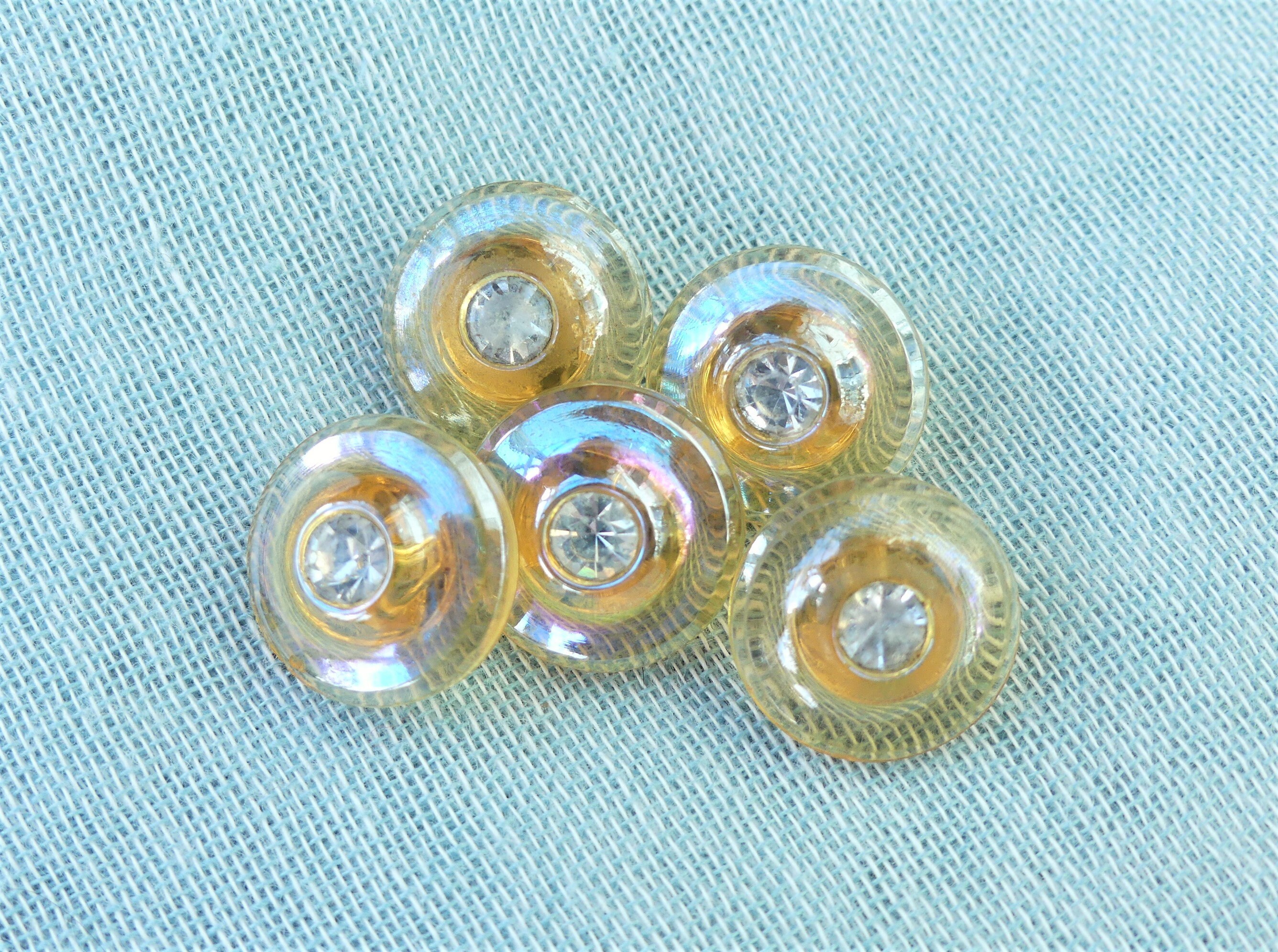 Vintage 1950s Ab Lustre Glass Shank Buttons With Crystal Etsy Uk