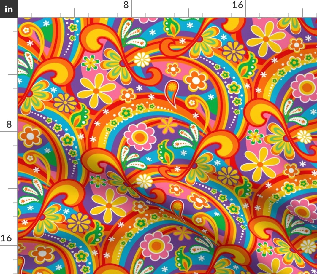 Spoonflower Fabric Psychedelic Flower Power 1960s Flowers Colorful Rainbows 60s Paisley Printed On Fleece Fabric By The Yard Sewing Blankets Loungewear And No Sew Projects Walmart Com